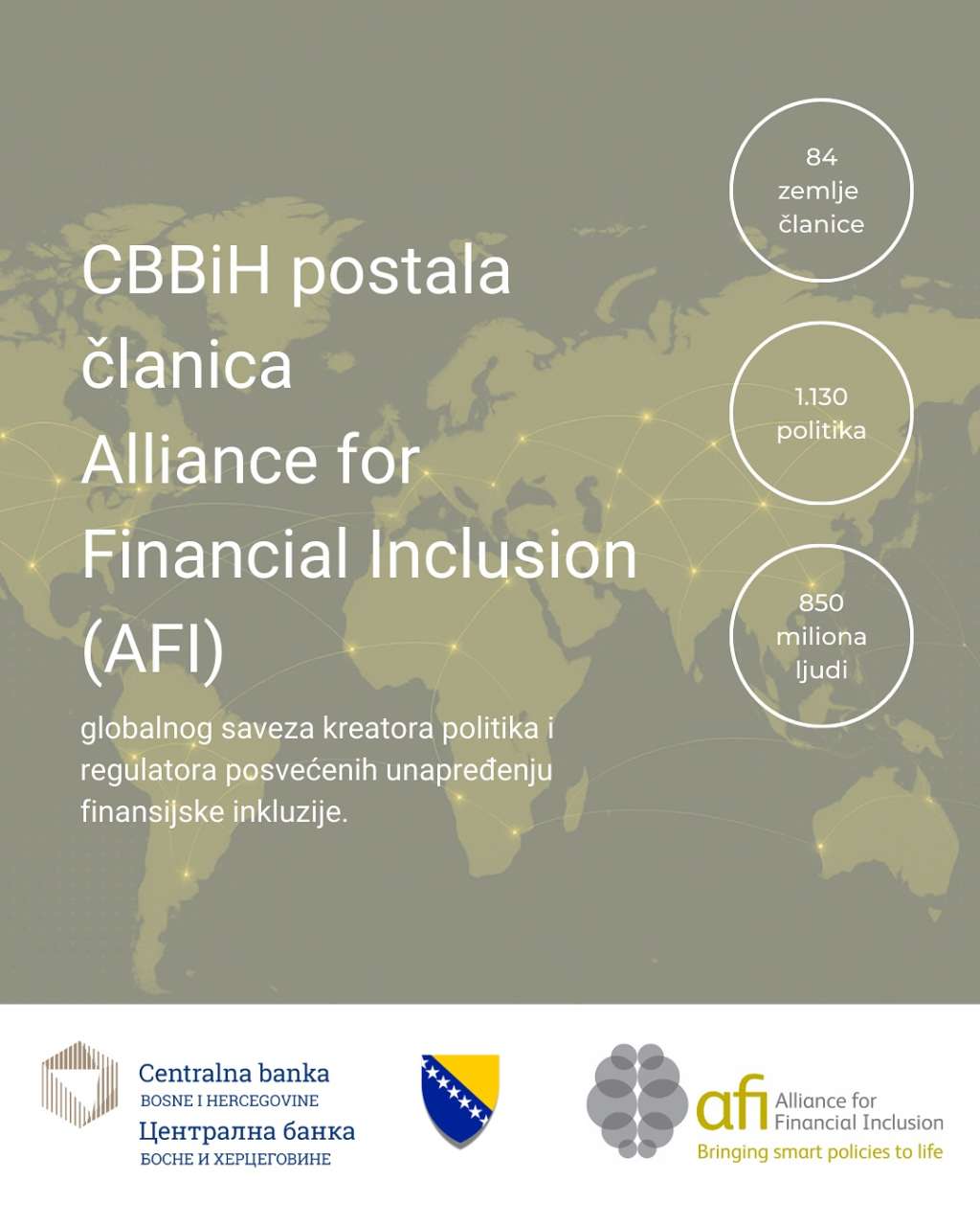 Centralna banka Bosne i Hercegovine postala članica Alliance for Financial Inclusion (AFI)