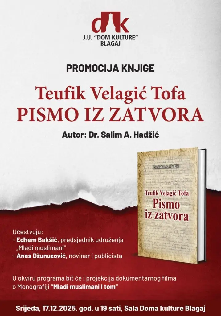 Promocija će biti upriličena večeras u 19.00 sati u sali Doma kulture “Blagaj”.