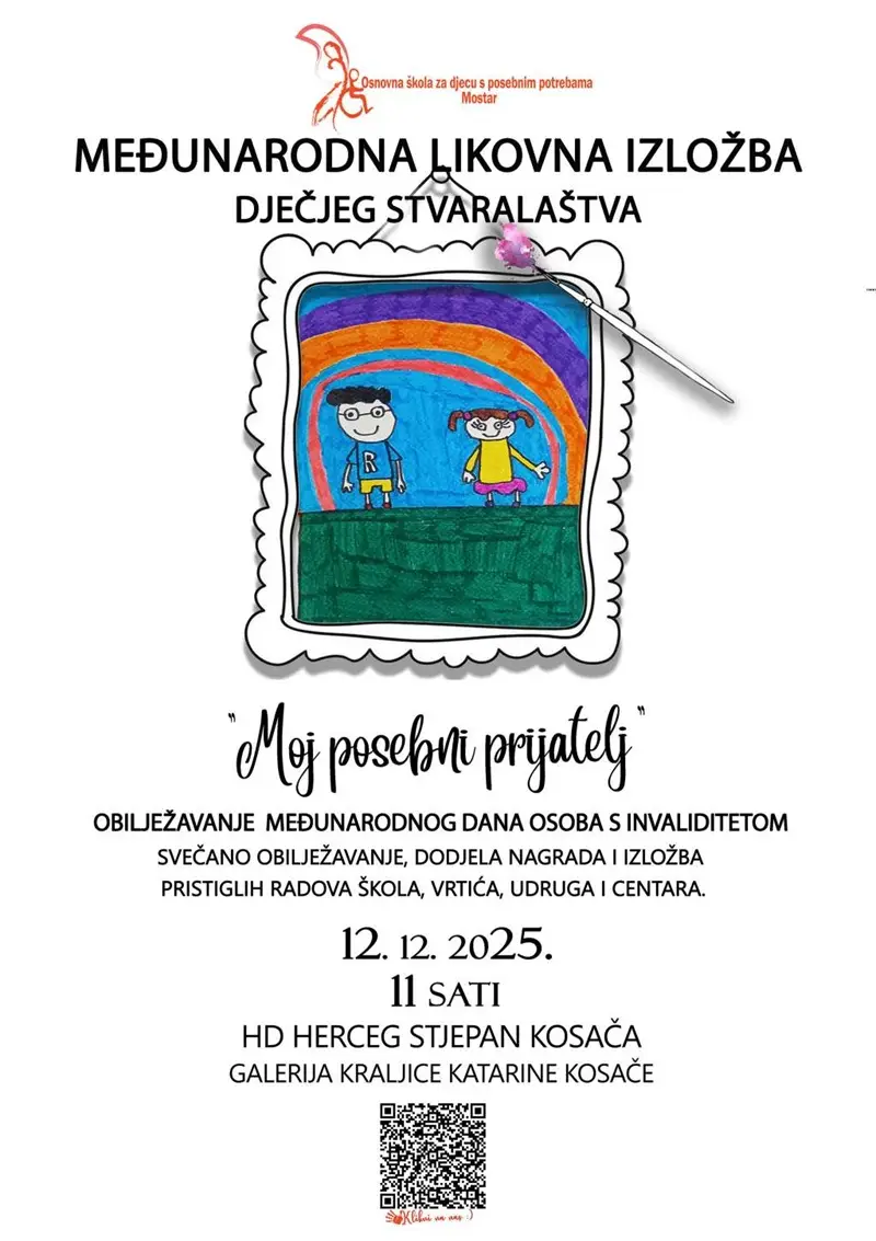Povodom Međunarodnog dana osoba s invaliditetom, Osnovna škola za djecu s posebnim potrebama organizirala je Međunarodni likovni natječaj na temu “Moj posebni prijatelj” za osnovne škole, vrtiće, udruženja i centre.