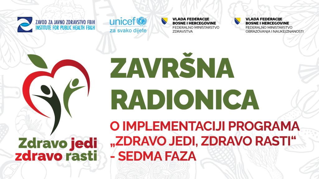 Zavod za javno zdravstvo Federacije Bosne i Hercegovine, kao koordinirajuća stručno-tehnička institucija na nivou Federacije BiH za pitanja ishrane dojenčadi i djece, u suradnji s Federalnim ministarstvom zdravstva, Federalnim ministarstvom obrazovanja i nauke/znanosti, UNICEF-om Bosne i Hercegovine te nizom vladinih i nevladinih partnera s lokalnog nivoa, realizirao je sedmu fazu Programa „Zdravo jedi, zdravo rasti“. Opći cilj Programa je unaprjeđenje ishrane dojenčadi, predškolske i školske djece u Federaciji BiH te poboljšanje stanja njihove uhranjenosti, rasta i razvoja.