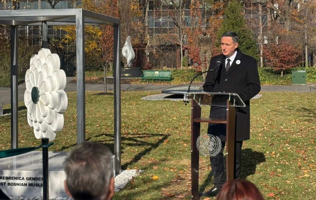 Nakon Rezolucija Generalne skupštine UN-a o Međunarodnom danu sjećanja i obilježavanja genocida u Srebrenici 1995. godine, “danas otkrivamo spomenik žrtvama genocida u sjedištu UN-a i ovo je historijski trenutak za Bosnu i Hercegovinu i Ujedinjene nacije“.