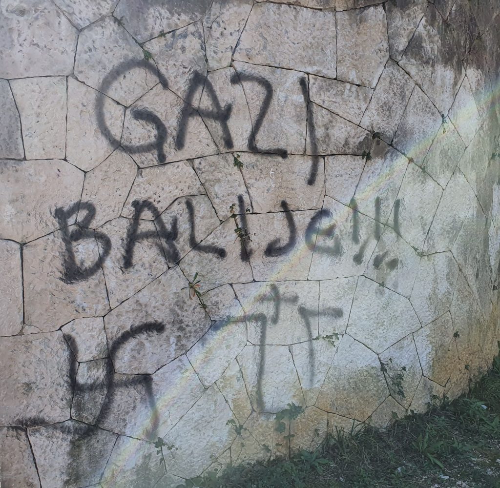 “Najvjerovatnije tokom protekle noći, uoči obilježavanja Dana oslobođenja Mostara u Drugom svjetskom ratu, znajući da će antifašisti posjetiti ovo mjesto, na ulazu u spomen-kompleks iscrtano je veliko ustaško slovo „U“. Poruka je jasna – pokušaj zastrašivanja i provociranja onih koji baštine vrijednosti antifašizma”, tvrdi Sanel Kajan.