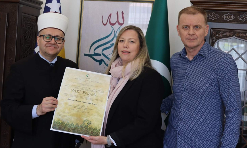 Mostarski muftija dr. Salem-ef. Dedović danas je u Mostaru svečano uručio vakufnamu Arminu i Minji Sefić, rođenoj Dugalić, za doprinos obnovi i rehabilitaciji Dugalića džamije u Nevesinju.