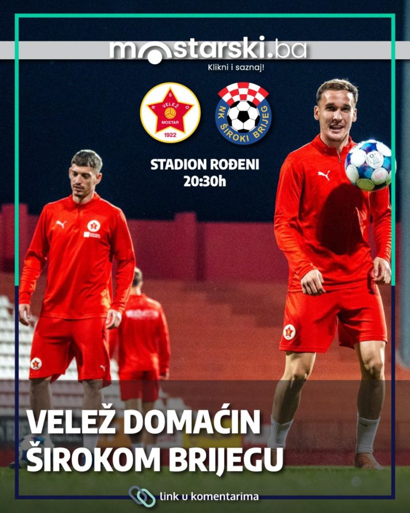 Radi se o duelu “komšija” na tabeli. Velež je na četvrtom, Široki Brijeg na petom mjestu, a dijele ih samo tri boda. Borba za četvrtu poziciju će biti važna ukoliko Zrinjski osvoji Kup BiH, jer bi onda ona vodila u Evropu.