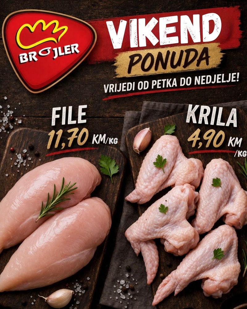 Ovog vikenda Brojler u Stocu donosi posebnu ponudu za sve ljubitelje svježeg i kvalitetnog mesa. Iskoristite odlične cijene i pripremite savršene obroke za porodicu i prijatelje!
