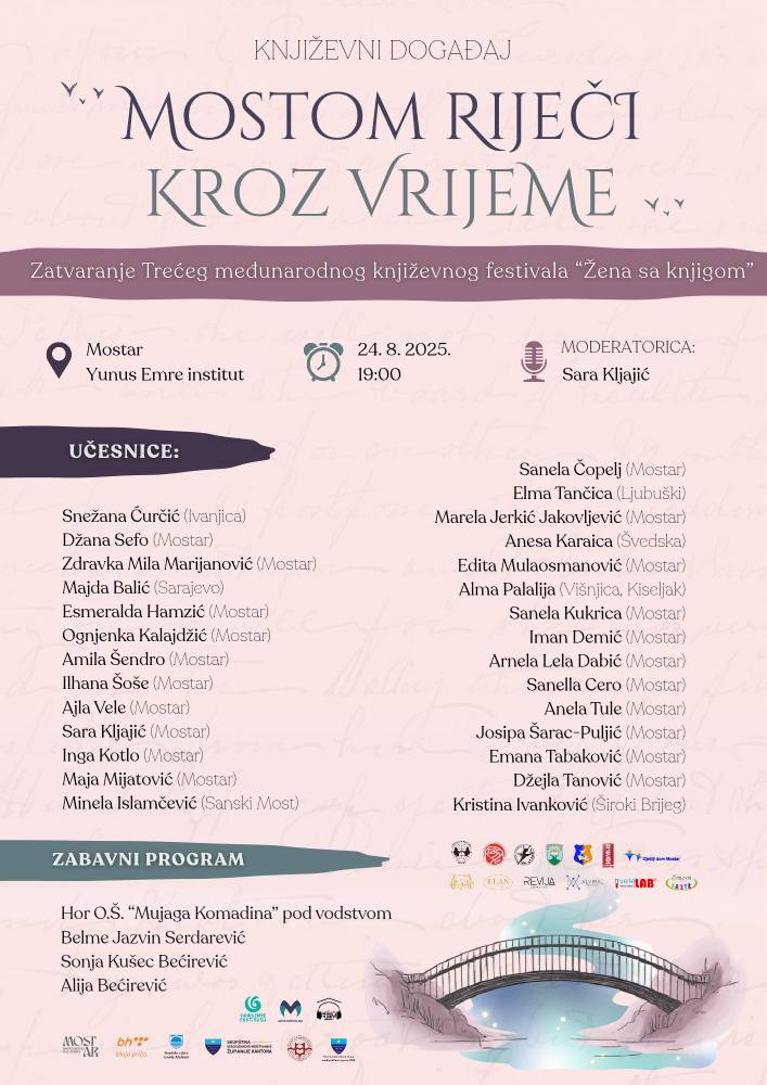 Zatvaranje 3. međunarodnog književnog festivala ‘Žena s knjigom’, bit će upriličeno večeras u 19 sati u prostoru Instituta Yunus Emre u Mostaru, uz bogat kulturno-umjetnički program.