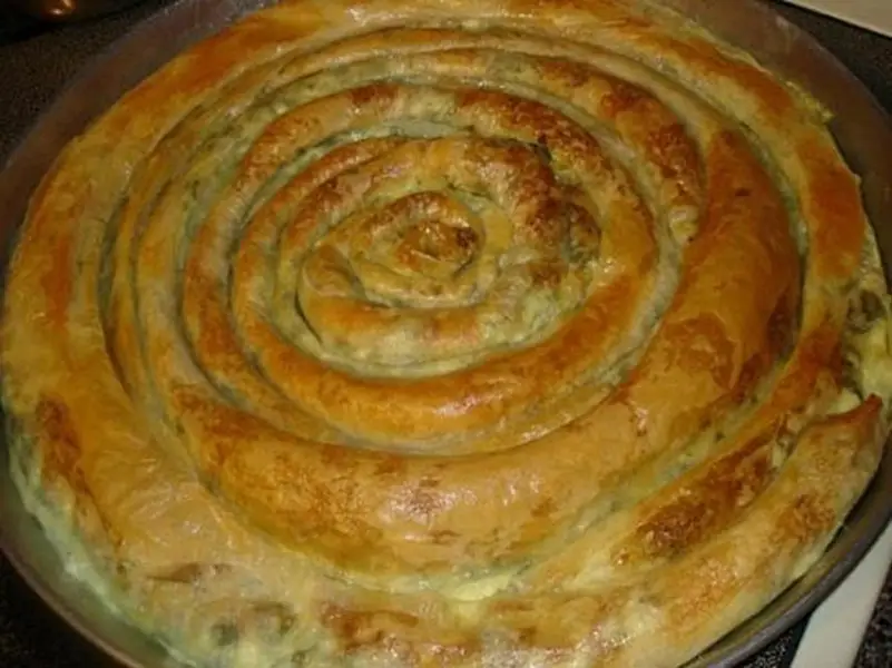 Od navedenih sastojaka za jufku zakuhati tijesto. Nauljiti i ostaviti 15 minuta da odstoji.