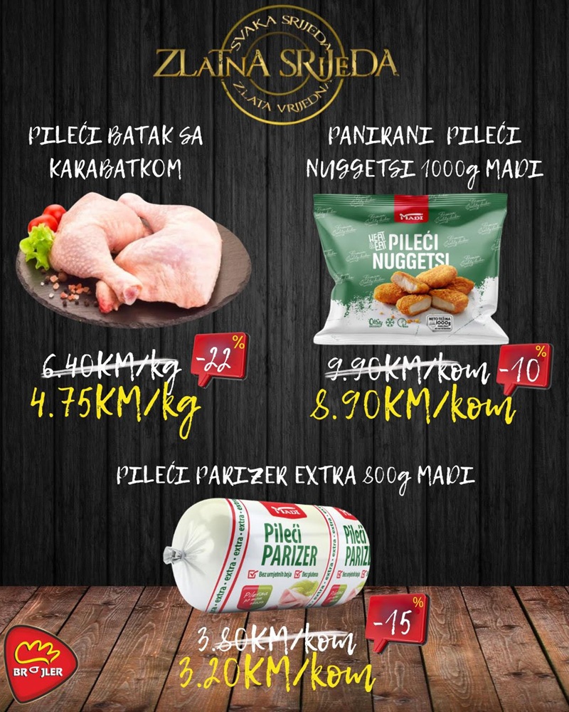 Vidimo se sutra – neka vaša Zlatna srijeda bude puna dobrog ukusa, pametne kupovine i još boljih obroka!, poručuju iz Brojlera.