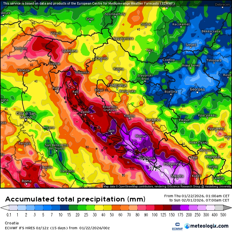 Naveo je i podrctao upozorenje da bi u navedenom periodu mogle pasti velike količine padavina, ponajprije na Jadranu, gorskom i zapadnom dijelu Hrvatske, zatim zapadnoj, jugozapadnoj dijelu srednje i istočne Bosne, u Hercegovini, jugu Srbije i Crnoj Gori i Albaniji.